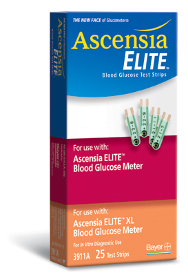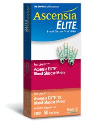 | Ascensia ELITE® Test Strips Available in packs of 25, 50 and 100 |